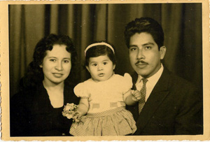 19. Con su esposo y su primera hija, Maritza, 1959.
