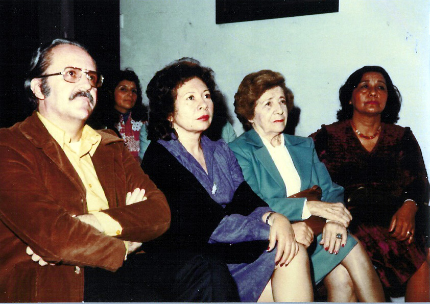 36. Presentación de Pentagramas ebrios,1986; Betty Castro, el escritor Manuel Velásquez, un colega, Carmen Luz y Willy Pinto.
