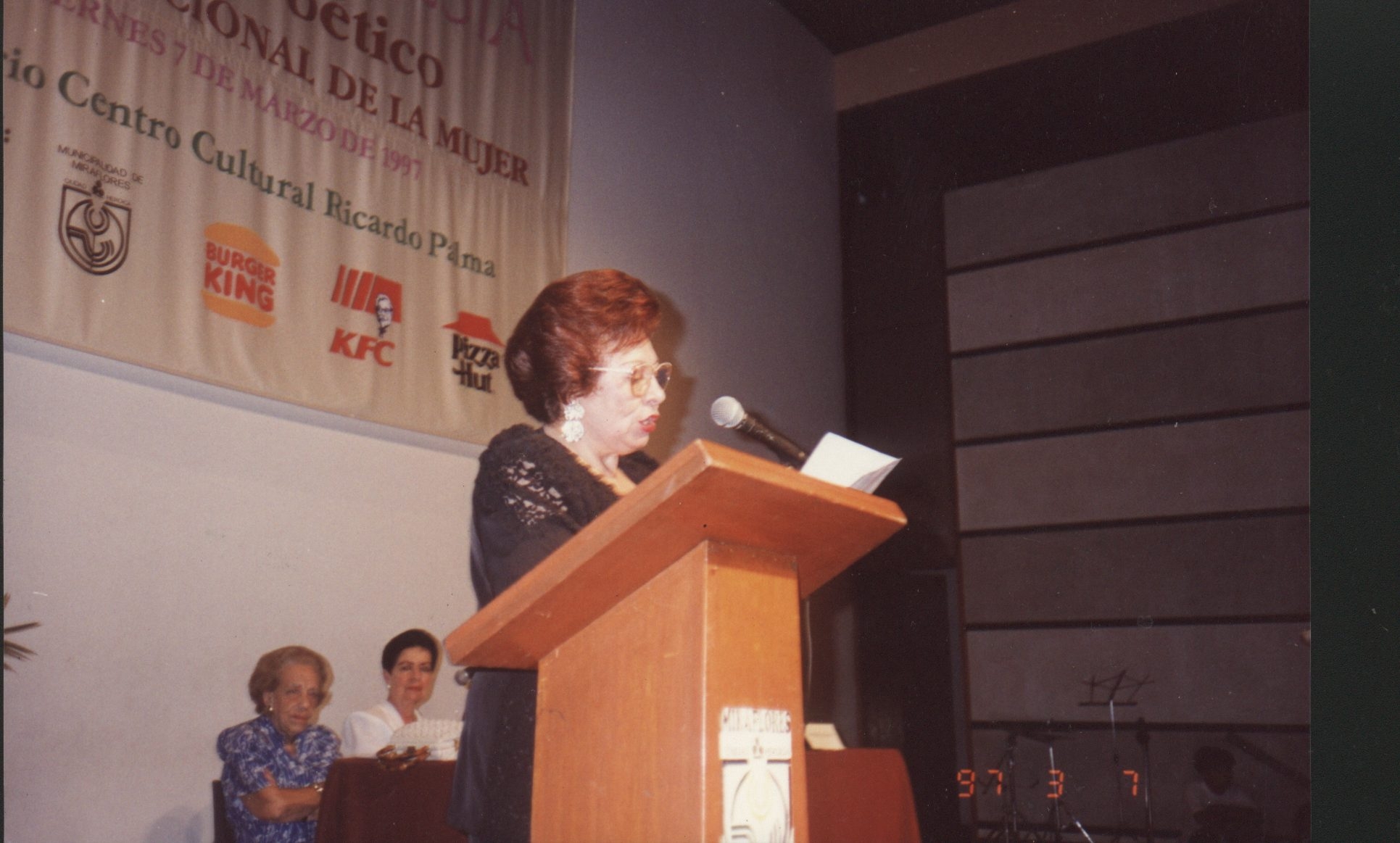 46. En el Día de la Mujer, Centro Cultural Ricardo Palma 7.3.1997. También en la foto Yolanda Westphalen y Gladys María Prats.
