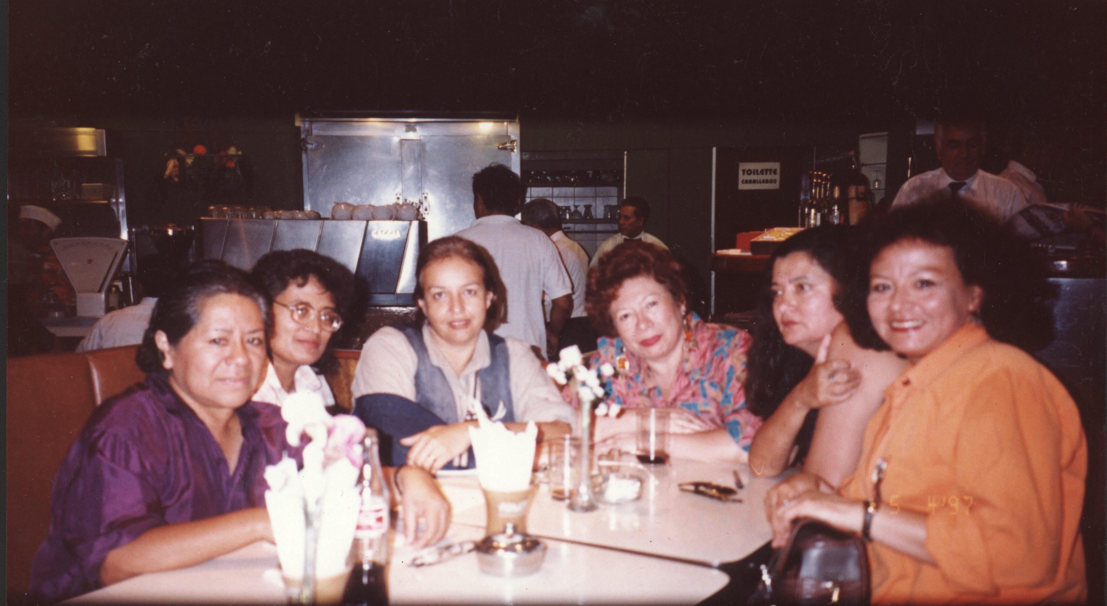 47. En el Café Haití de Miraflores, Lima: Esther Castañeda, Ana Luisa Soriano, Marita Troiano, Carmen Luz, Rosina Valcárcel y Sonia Luz Carrillo (5.4.1997)