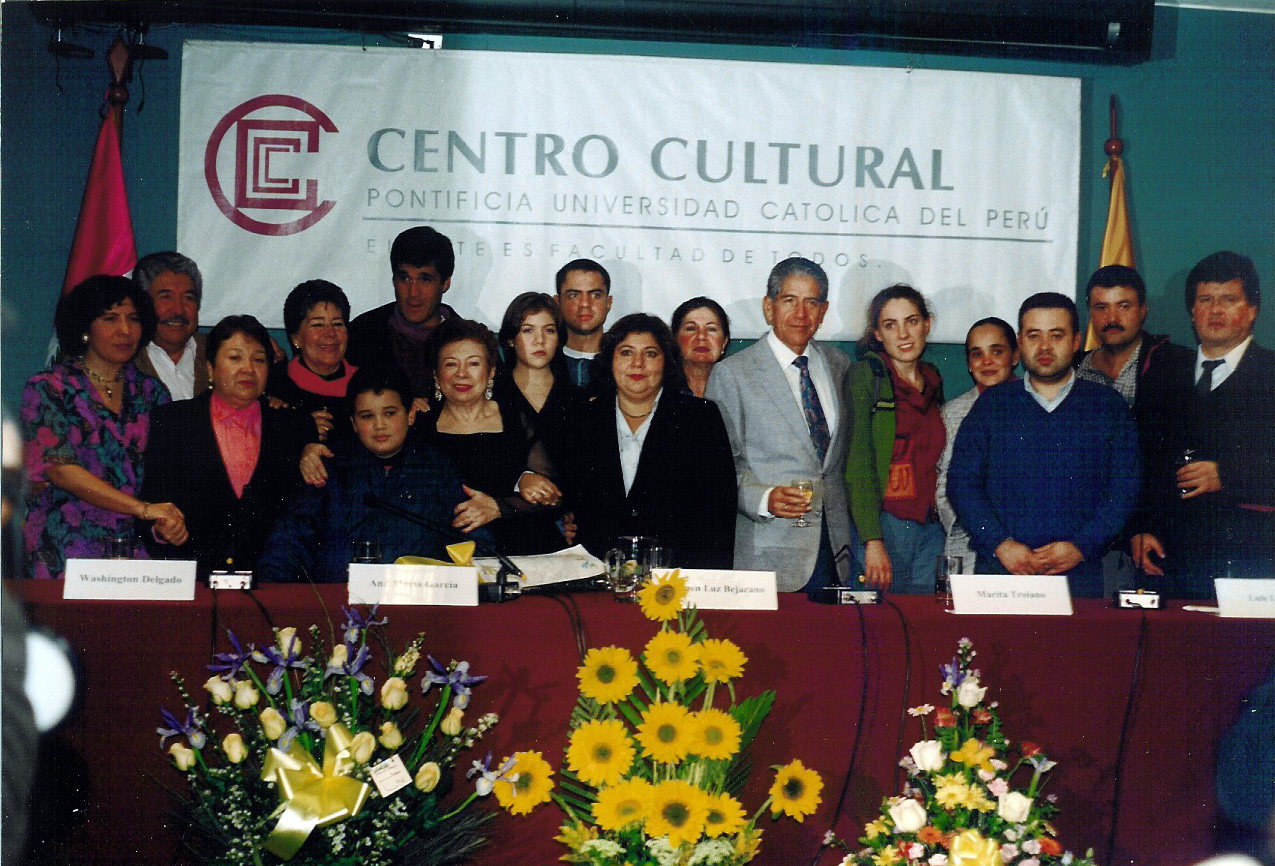 60. Con familiares y amigos en el mismo acto. De izq. a der., Maritza, José Antonio Bejarano, Lastenia Luisa Bejarano, Frida Calderón, Diego Martín Solé, José A. Bejarano Calderón, Carmen Luz, Pamela Sillau, César Gabrielli, Carmen Irina, Elena Neyra, Enrique Núñez, Ana, Patricia Saco Vertis, Ramón Solé y José A. Coz.