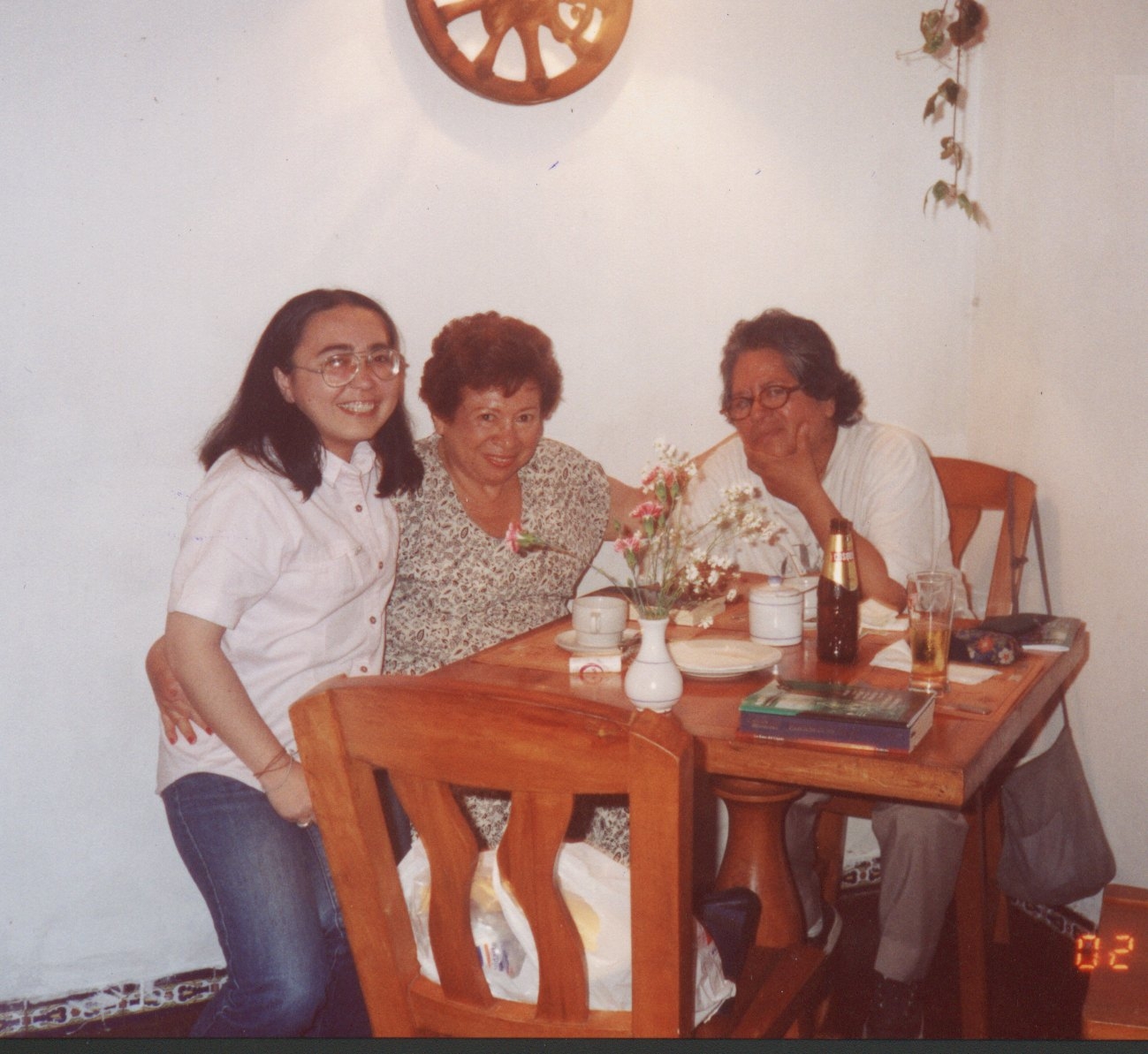 77. Con Elizabeth Toguchi y Esther Castañeda, a mediados del 2002.