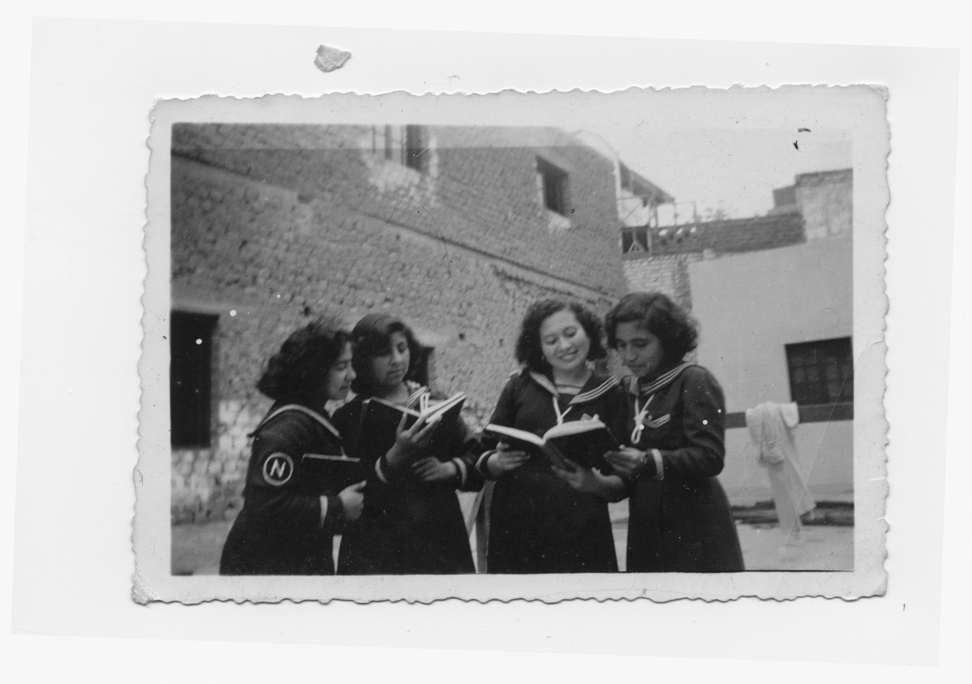 21. Un grupo de alumnos con el historiador Raúl Porras Barrenechea. Carmen Luz lleva vestido blanco.